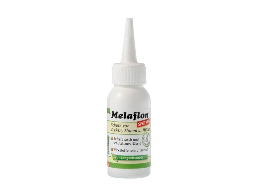 Anwendung: Anibio Melaflon alle 7 bis 10 Tage je 2 bis 5 Tropfen (je nach Größe des Hundes) auf Nacken, Rutenansatz und Bauch verteilen. Bei akutem Befall 3 Tage lang 1 x täglich die angegebene Tropfenmenge anwenden.