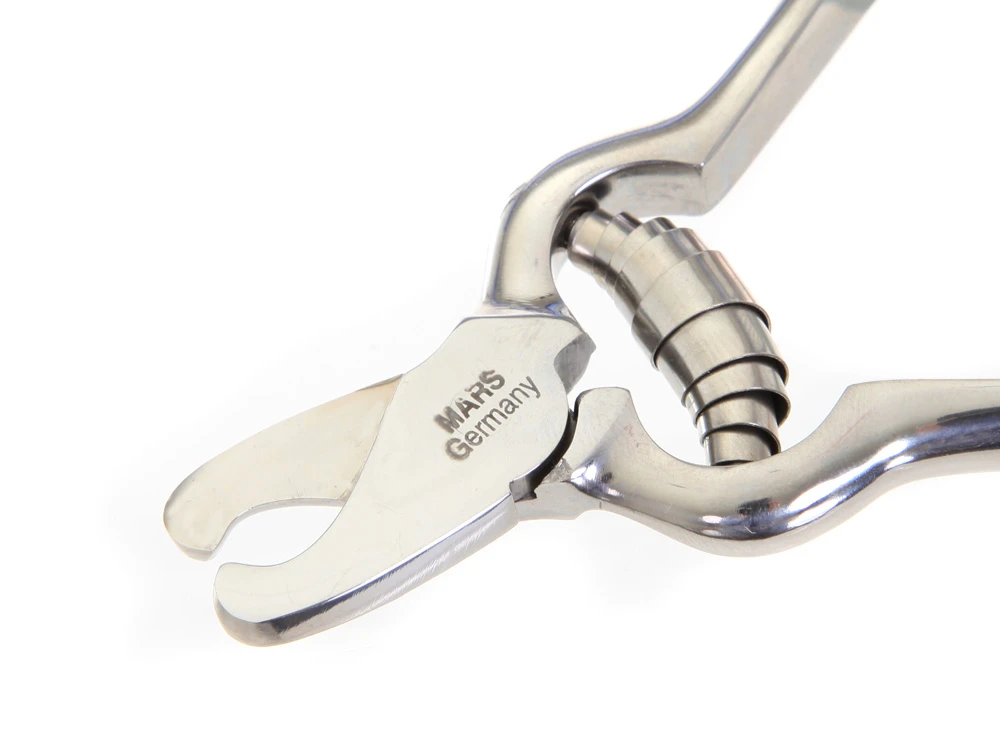 Die halbrunde Schneideform verhindert ein Aussplittern des Nagels, die Kralle wird beim Schneiden umschlossen und von Außen nach Innen gleichmäßig gekürzt.