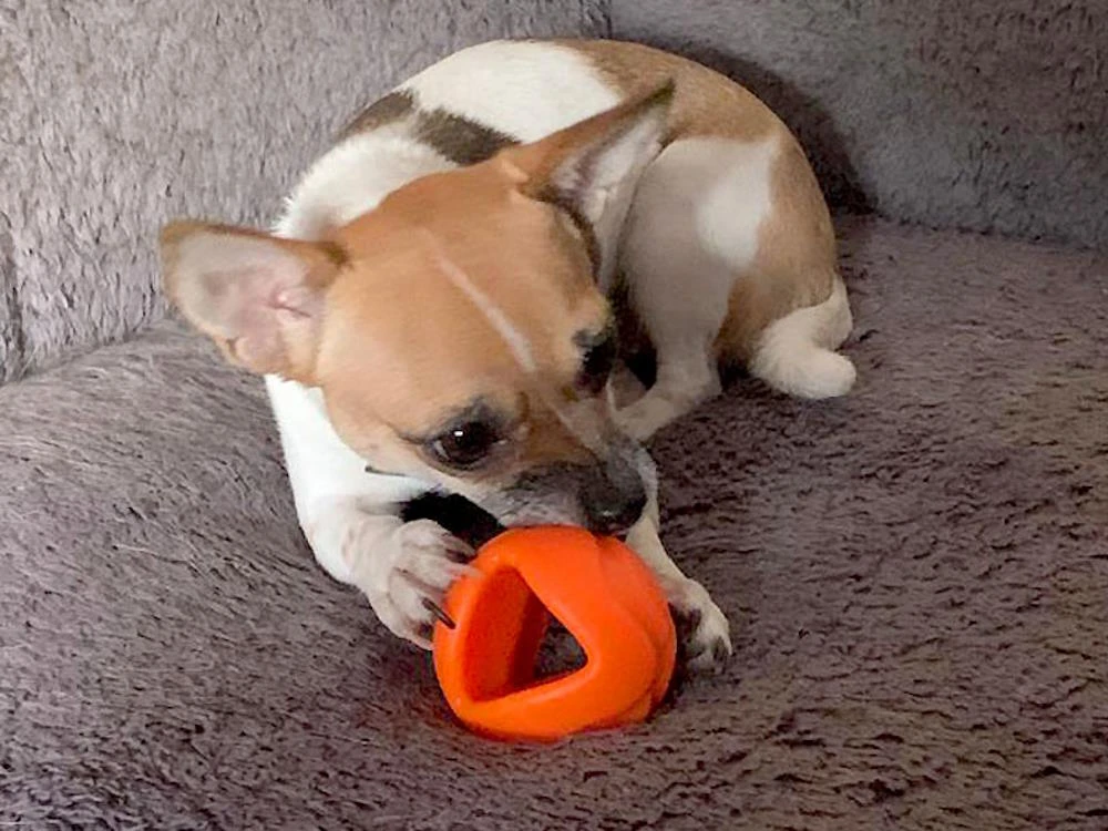 Wenn Du in das Loch Frischkäse streichst und den Ball einfrierst hast Du zudem eine leckere Sommer-Erfrischung für Deinen Hund. Vielseitiger kann ein Hundeball kaum sein.