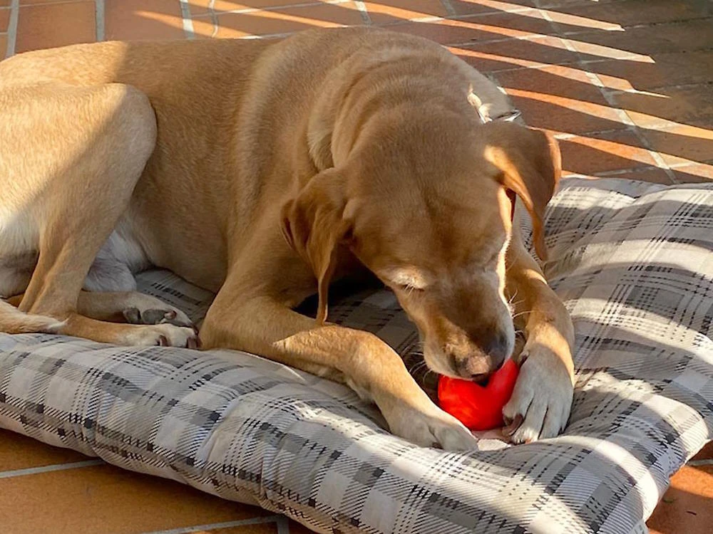 Kein Spielzeug ist unzerstörbar. Überprüfe den Ball regelmäßig auf Schäden und ersetze ihn, wenn er defekt ist oder wenn Teile verloren gehen, da ansonsten eine Verletzung Deines Hundes nicht ausgeschlossen werden kann.