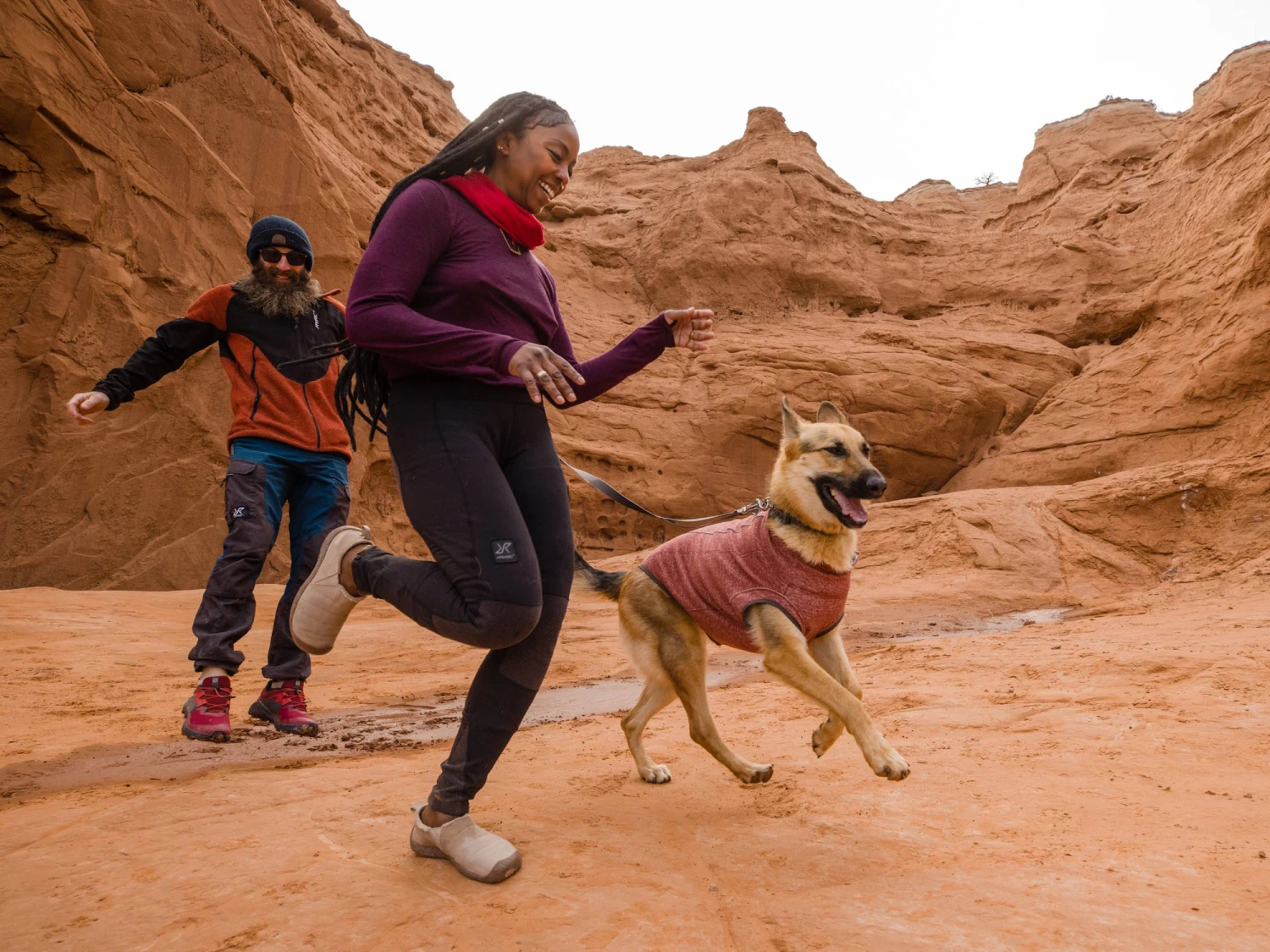 Ein wärmender Sweater für Deinen Hund aus nachhaltigem Hanf und Bio-Baumwolle. Der strapazierfähige Strickpullover kann an kalten Tagen solo oder als wärmende Schicht unter einem Regenmantel wie dem Ruffwear Sun Shower™ getragen werden.