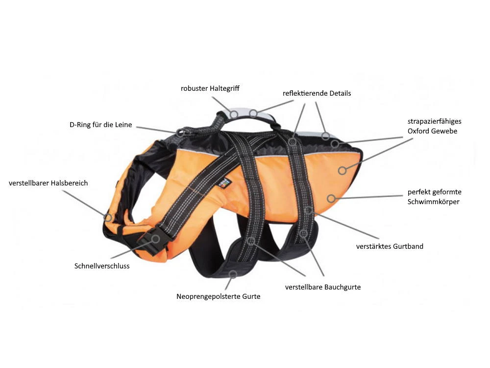 Die Schwimmkörper sind perfekt geformt, sodass sie optimalen Auftrieb gewährleisten, gleichzeitig aber deinem Hund volle Bewegungsfreiheit an Land und im Wasser ermöglichen.