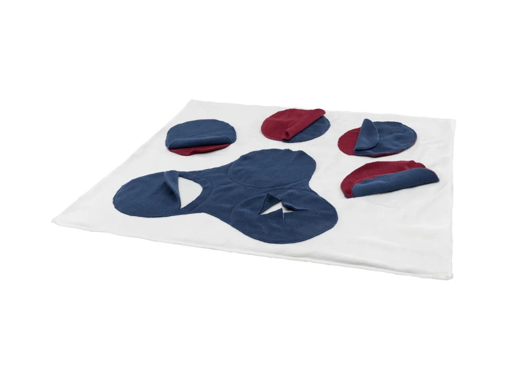 Mit dieser vielseitigen, bunten Schüffeltdecke kannst Du deinen Hund sinnvoll beschäftigen. In den verschiedenen Taschen kannst Du Leckerlies oder Spielzeug verstecken oder deinen Hund sogar seine gesamte Tagesration Trockenfutter erarbeiten lassen.