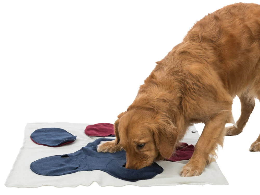 Durch das Suchen und Aufspüren der Futterbrocken verhindert der Schnüffelteppich zudem, dass der Hund das Futter zu schnell herunterschlingt. So kommt keine Langeweile auf, dein Hund wird geistig gefordert und wird schließlich zufrieden und satt schlafen.