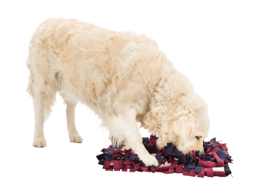 „Immer der Nase nach“ heißt es für Hunde auf der Suche nach Futter. Das macht nicht nur Spaß, sondern ist für deinen Hund eine arttypische Beschäftigung. Durch das Suchen und Aufspüren der Futterbrocken verhindert der Schnüffelteppich zudem, dass der Hund das Futter zu schnell herunterschlingt.